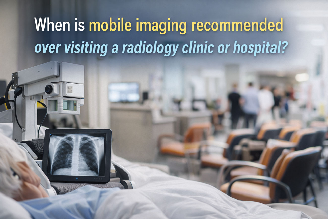 Do I need to visit a clinic or can radiology come to me as a patient? Mobile imaging is often recommended when a patient cannot safely travel due to injury, mobility limitations, illness, or recovery from surgery. In these situations, a mobile x-ray service provides diagnostic support without requiring transport to a clinic or hospital. This can be particularly helpful for those experiencing acute pain, elderly patients, or people in home-care environments. Mobile options are also well suited for individuals who need rapid assessment, as scans can be completed at bedside with minimal disruption and no need to navigate clinic reception or waiting areas.