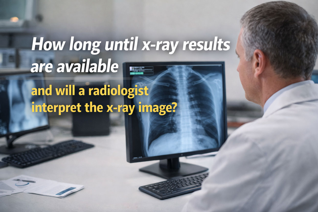How long until x-ray results are available and will a radiologist interpret the x-ray image?